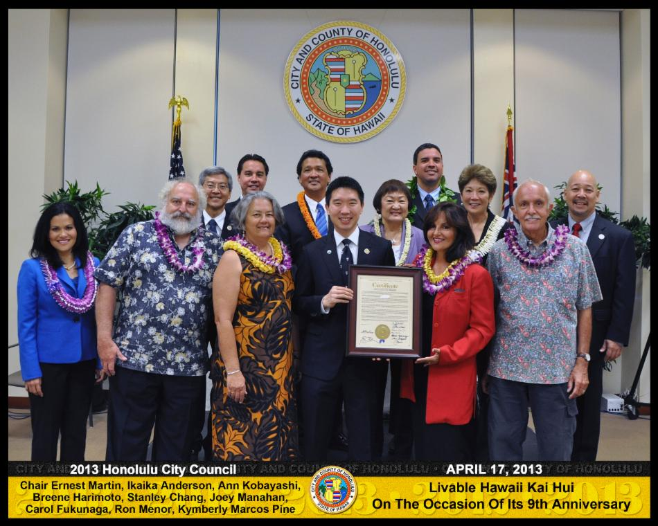 4-17-2013 Livable Hawaii Kai Hui 9th year anniversary award at Kapolei Hale presented by Council member Stanley Chang