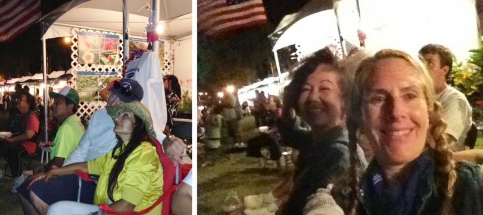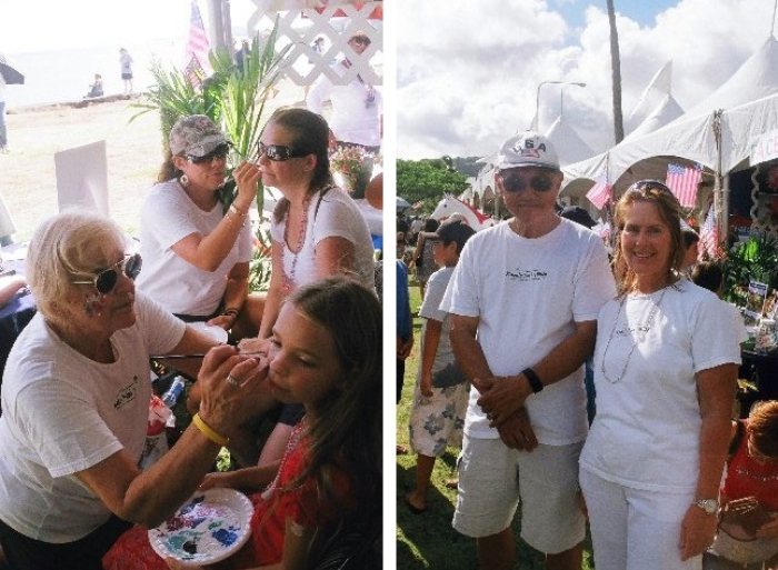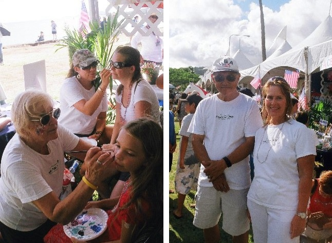7- 4 - 12 INDEPENDENCE DAY AT MAUNALUA BAY CELEBRATION - Livable Hawaii Kai Hui has participated in this event since it started in 2008. We have offered face painting for the keeki at our booth along with the help of the Kamilo Nui Valley Farmers. This year we offered information about our recent Wetland Project at the Oahu Club. BELOW ARE HUI MEMBERS ENJOYING THE SHOW!