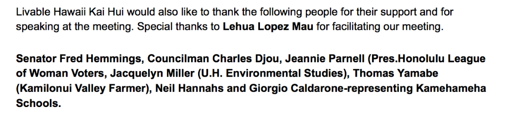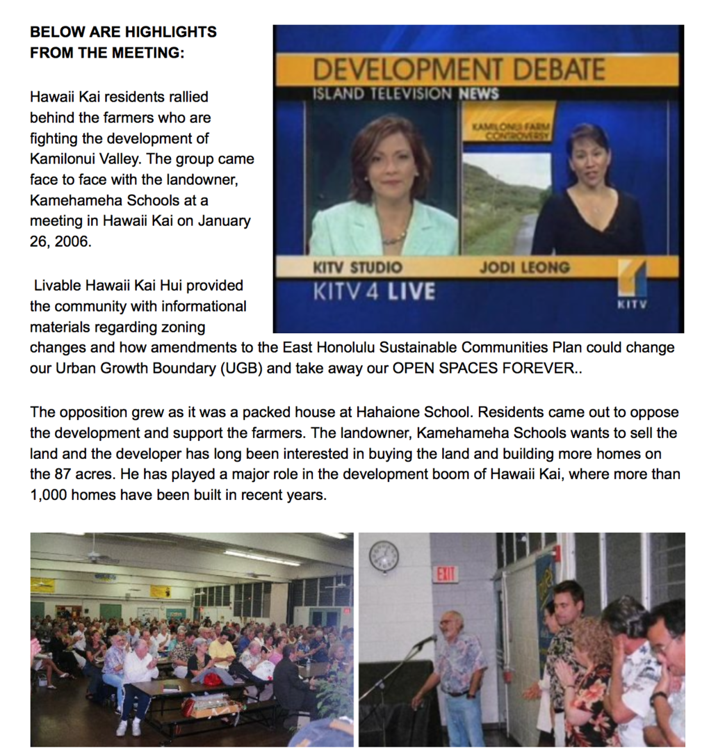 4-16-09 - Livable Hawaii Kai Hui co-sponsors the Town Hall Meeting regarding shark tour activities in the Maunalua Bay. East Oahu Shart Tour Still Lurking: http://www.hawaiinewsnow.com/story/10192405/east-oahu-shark-tour-still-lurking