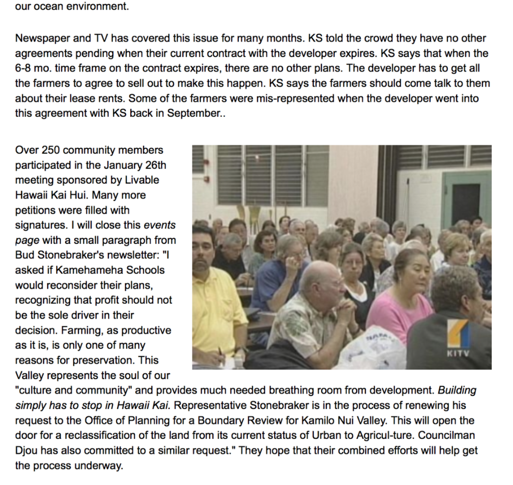 some of the kupuna and those involved in putting the Web site together," urged Elizabeth Reilly, president of Livable Hawaii Kai Hui, a nonprofit community organization.